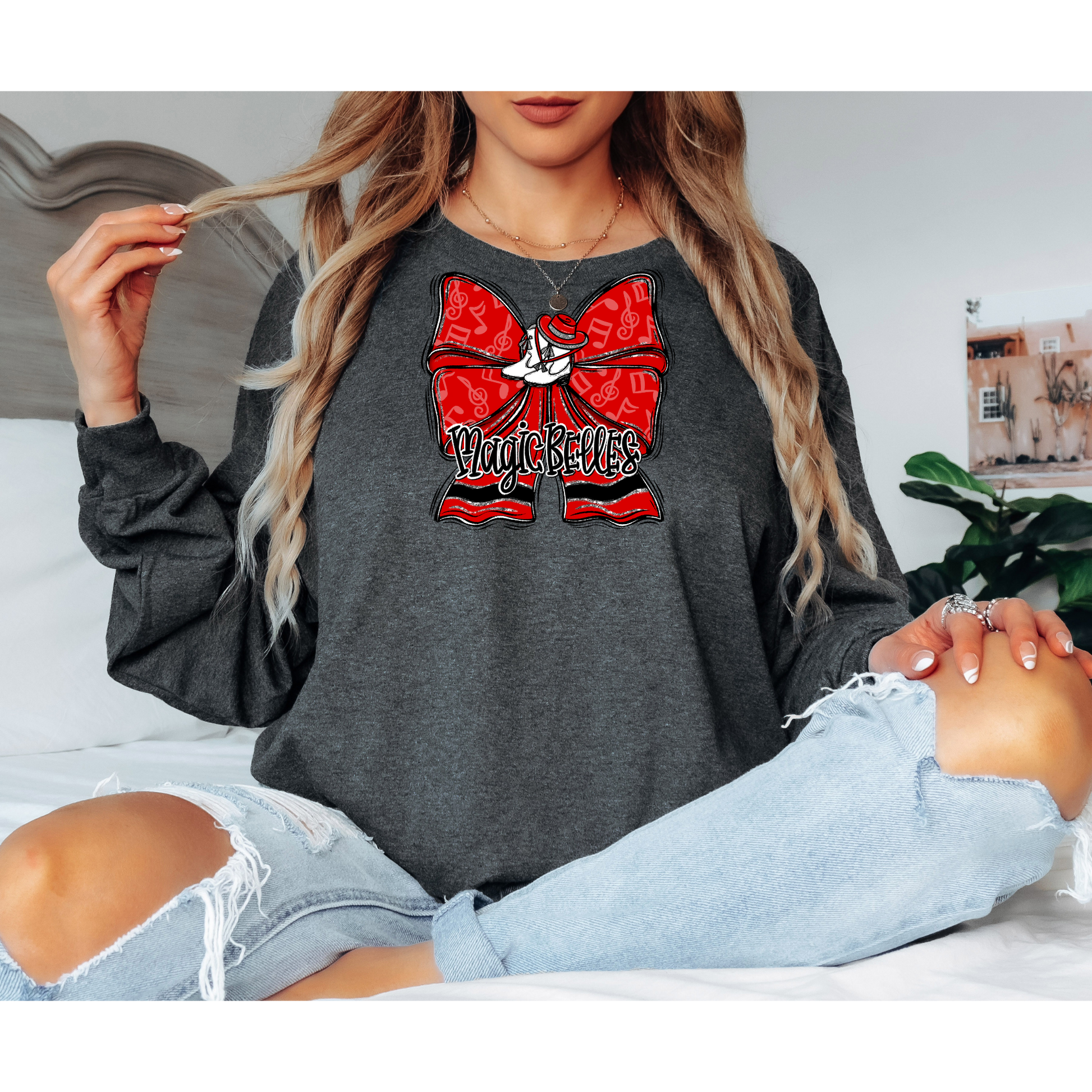 Add some drama to your Magic Belles spirit with our Magic Belles Coquette Bow sweatshirt or long sleeve tee. This bold design features red and black accents that stand out in the stands or on the go.